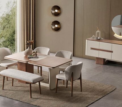 سفرة GHOSTO خشب طبيعى شاملة : تربيزة بقرصة مستطيلة / 4 كراسي + بانكيت/ بوفيه / مراية EGP78,700.00 EGP62,900.00