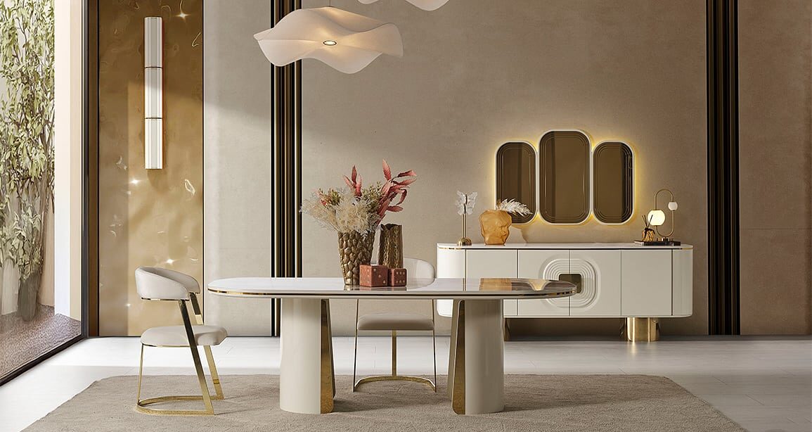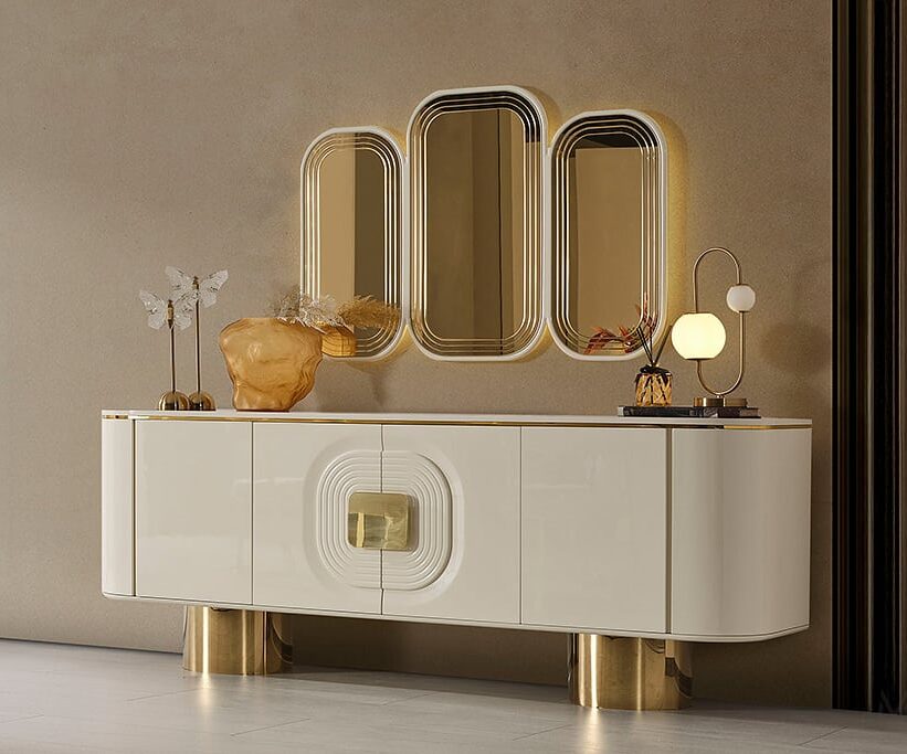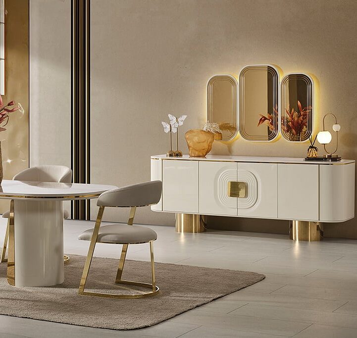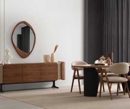 سفرة CARVING خشب طبيعى × معدن مطلى شاملة تربيزة مستطيلة / 6 كراسي/ بوفيه / مراية EGP89,700.00 EGP71,700.00