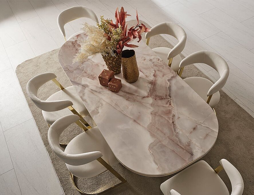 • تربيزة بقرصة بيضاوية مقاس 200 × 100 سم  / أرتفاع 80 سم