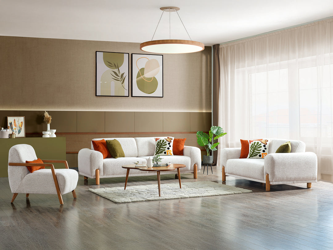 طقم ليفينج أوف وايت خشب زان أحمر طبيعى / مكون من كنبة ثلاثية – كنبة ثنائية – 1 فوتيه